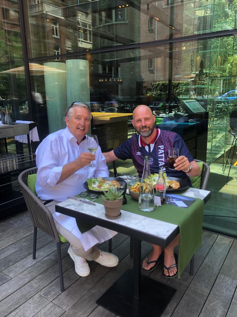 Onze gezamenlijke lunches: twee directeuren die tijdens een te dure lunch ergens op de ZuidAs met wel weer erg lekkere gerechtjes en goede koffie en passant een paar belangrijke afspraken maken en tussendoor alle zaken met een korreltje zout nemen en lekker ons eigen gang gaan.