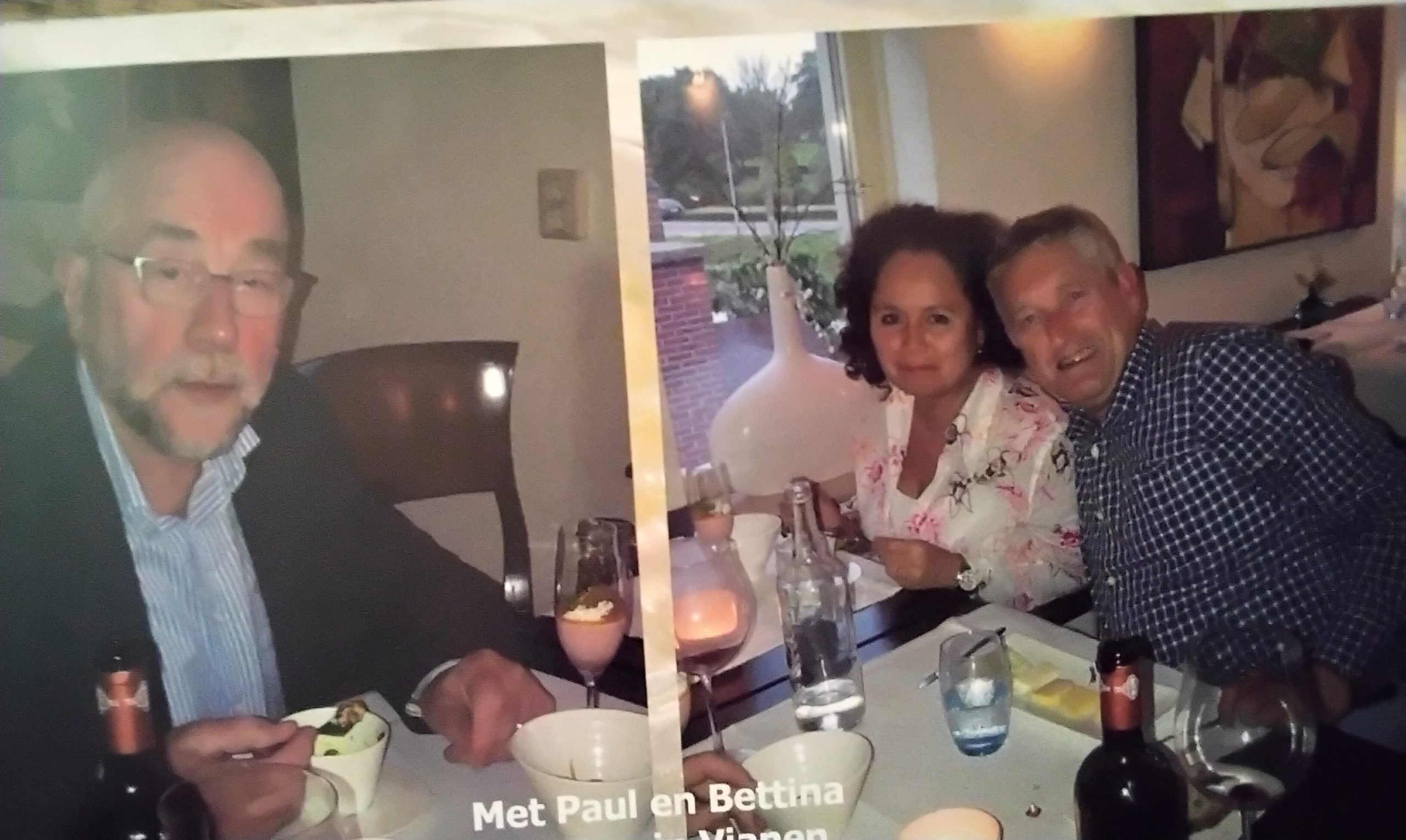 Ik geniet ook heel erg van Paul’s humor. We eten af en toe samen ( waarbij Paul als de smulpaap en levensgenieter die hij is, meestal een uitstekend restaurant uitkiest.) Ik bewaar warme herinneringen aan die etentjes en aan de lol die we dan samen hebben en hoop dat we daar krakend en piepend nog een hele tijd mee door kunnen gaan. Ik wens jullie een stralende voortzetting van jullie relatie toe, nu officieel gehuwd, als (bijzondere) man en (bijzondere) vrouw.