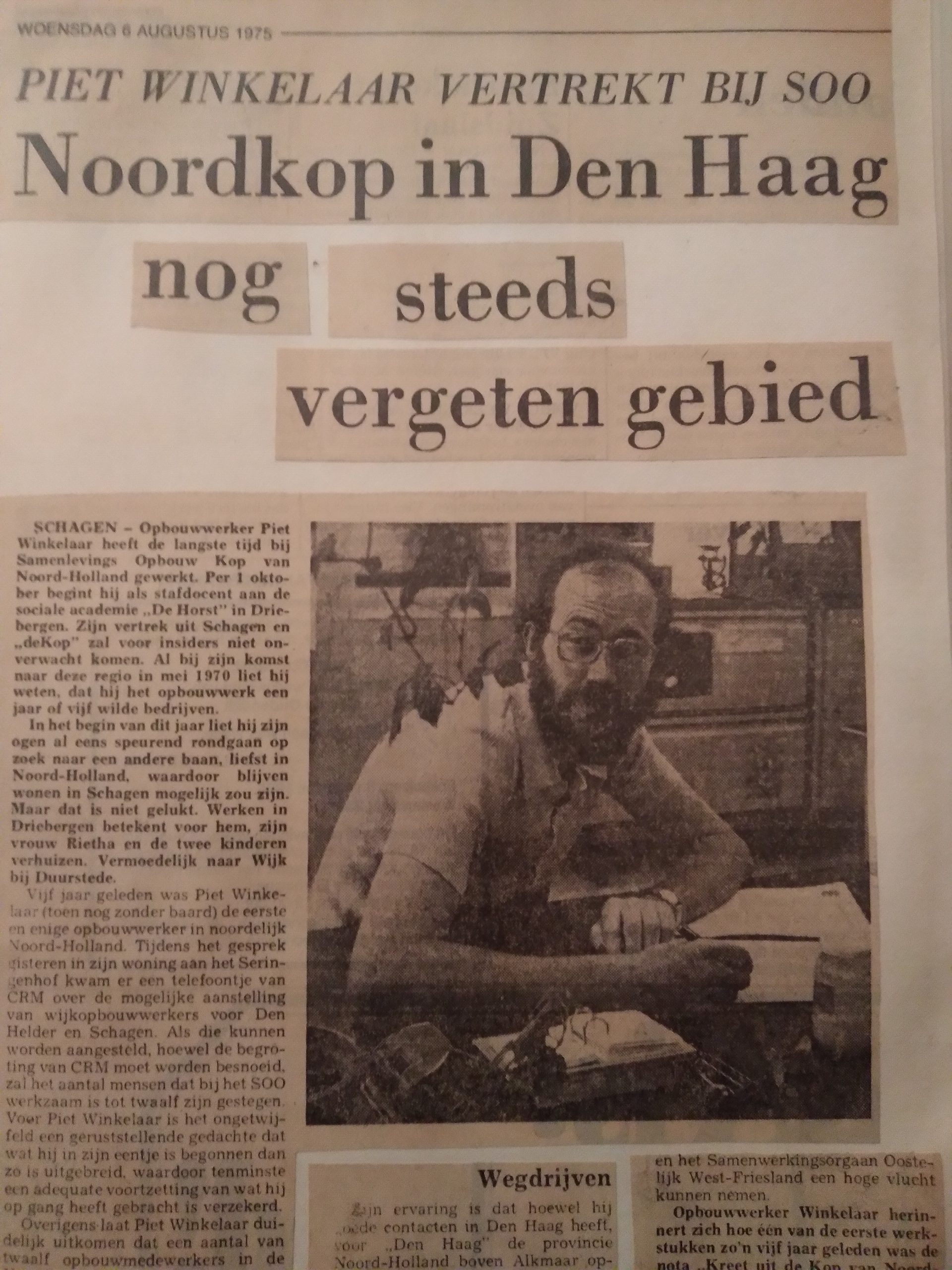 In het najaar van 1975 kwam ik te werken bij de sociale academie de Horst in Driebergen. Ik had zes jaar in de samenlevingsopbouw van Noord Holland gewerkt en in de kop van Nrd Holland het opbouwwerk vorm gegeven. Op de Horst kreeg ik als taak de relatie en de aansluiting met de praktijk in kaart te brengen en daarnaast als docent opbouwwerk les te geven in de parttime opleiding maatschappelijk werk. Maar al gauw werd ik ook gevraagd in de opleidingen cultureel werk te komen waar opbouwwerk een nieuw vak was. Zo raakte ik ook betrokken bij de eindexamens waar opbouwwerk in het geding was en maakte ik kennis met ene Paul Roosenstein. Later herinnerde hij mij eraan dat hij voor zijn examen van mij maar een 7 kreeg, terwijl hij toch eigenlijk wel een 8 of een 9 had verdiend.