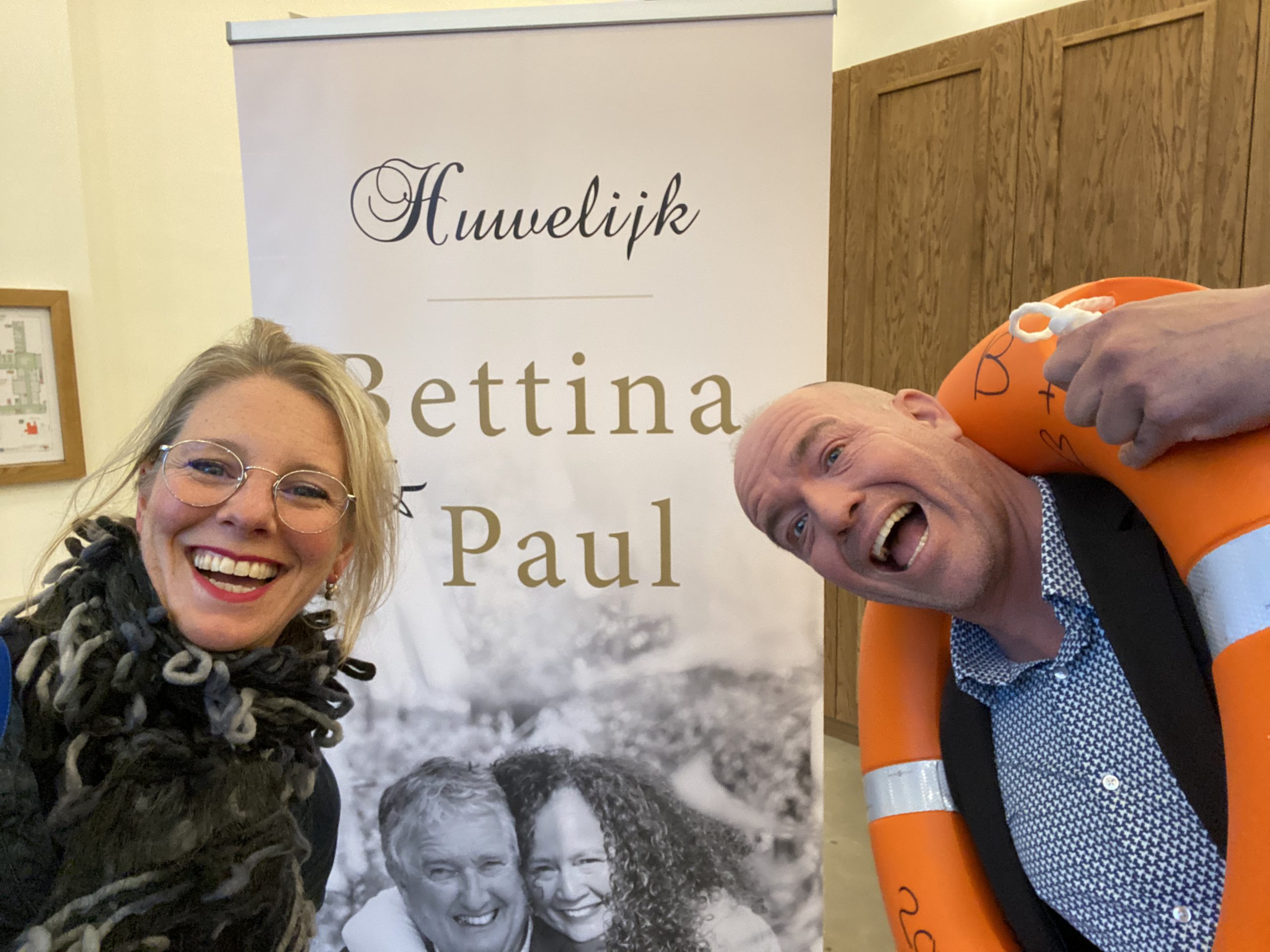 Dierbare Paul en Bettina, wij kennen jullie samen sinds 2000. We weten elkaar te wonen en we zijn op de hoogte van elkaars lotgevallen. Foto’s laten zien dat Rietha en ik menig keer met jullie uit eten zijn geweest. Al twintig jaar houden jullie elkaar vast en nu halen jullie zelfs kettingen tevoorschijn om elkaar niet meer los te laten. En wij staan erbij en applaudisseren. Van harte gefeliciteerd. We hopen nog lang samen het leven te kussen in het voorbijgaan.